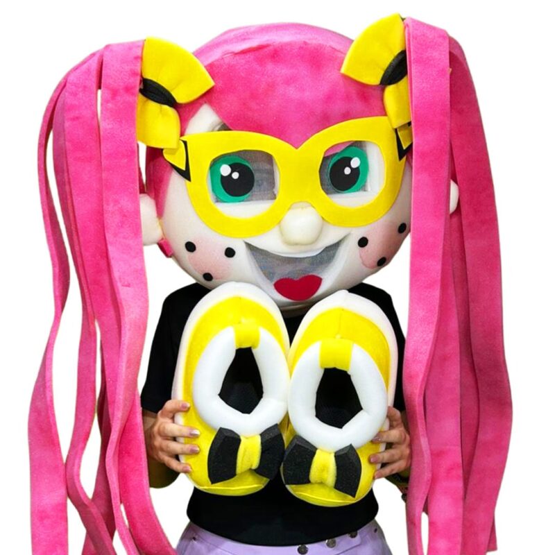 🎭✨ Fantasia Cabeção Menina Cabelo Rosa Longo – Diversão e Ensino no Ministério Infantil! ✨🎭