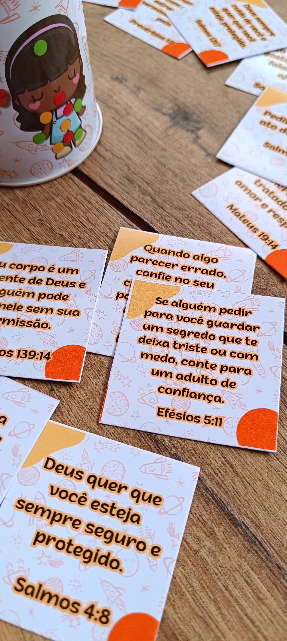 Jogo bíblico infantil educativo para abordar o tema da prevenção do abuso infantil.